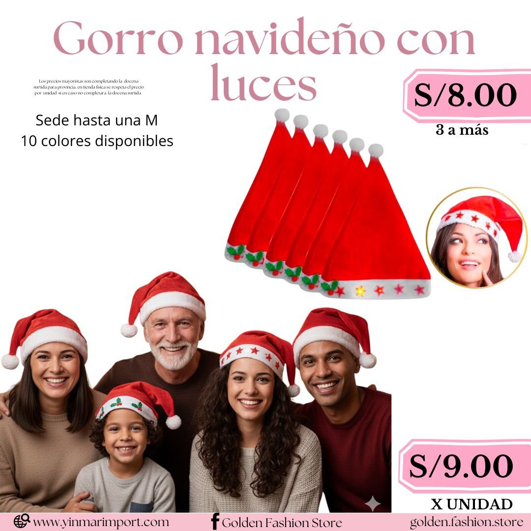 GORRO NAVIDEÑO CON LUCES cantidad